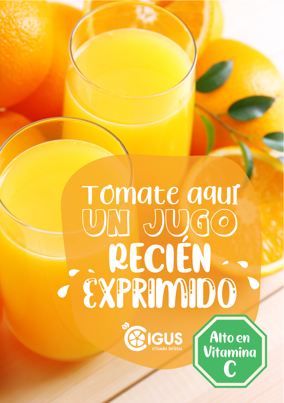 In this project, I designed a series of graphic pieces for Cigus, a brand known for its freshly squeezed orange juice machines across several stores in Santiago, Chile.